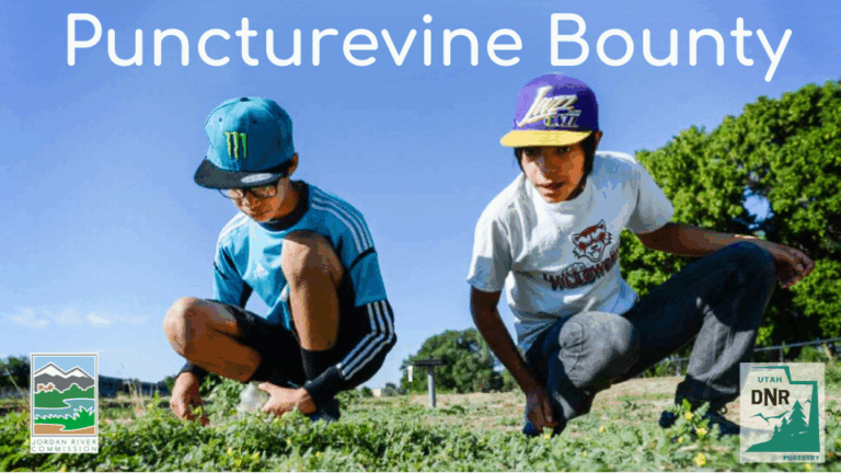 The Jordan River Commission, through the Jordan River Cooperative Weed Management Area, is offering a $2.50 per pound “bounty” for the removal of puncturevine (Tribulus terrestris), also known as “goathead.” All are welcome to come help pull puncturevine, but the bounty payment is only available to registered organizations with a W9 in the State of Utah. If you are an organization interested in participating, then sign up for the event and we will contact you for more information.
